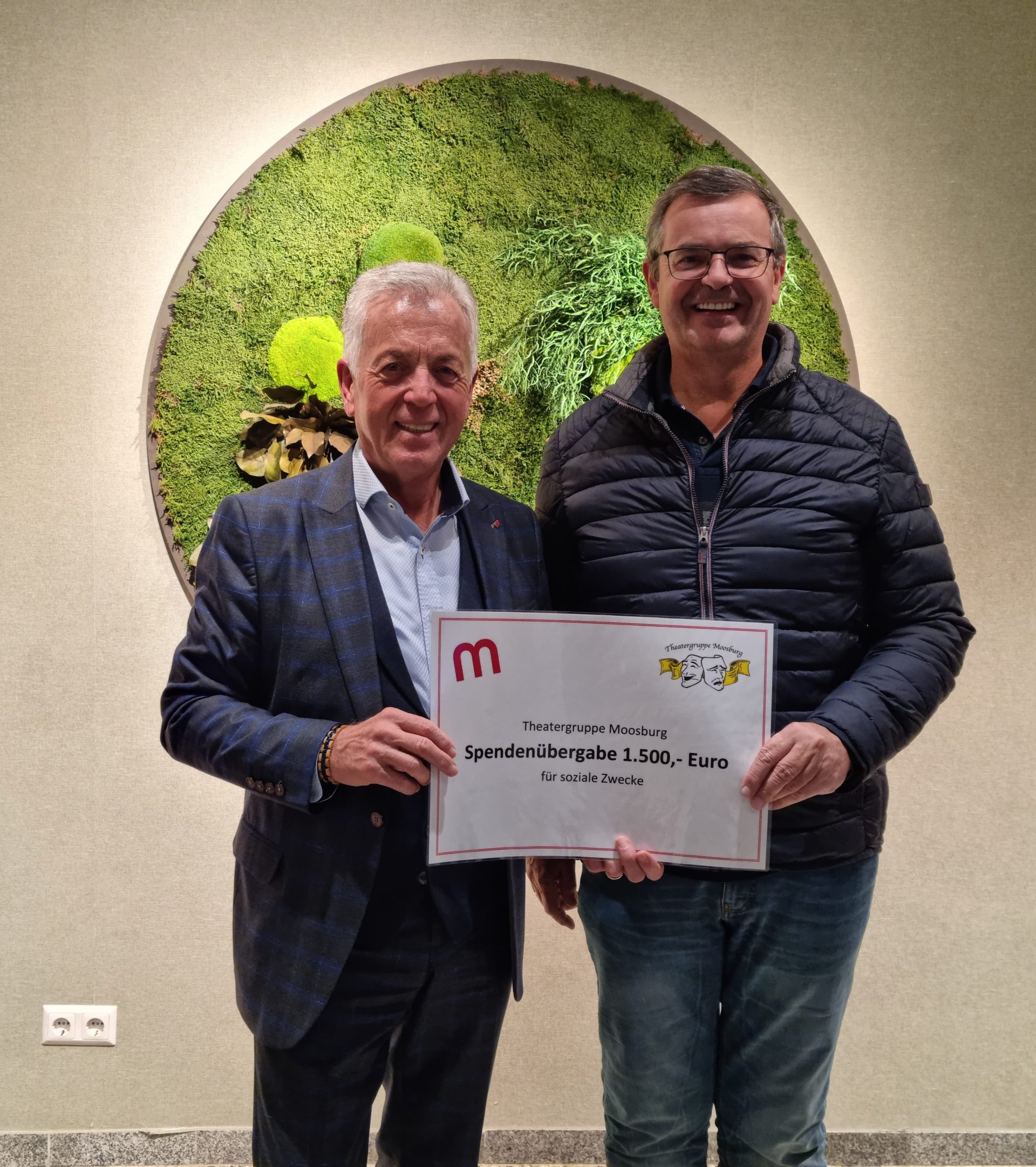 Die Theatergruppe Moosburg unter der Leitung von Herrn Kurt Mutzel überreichte Herrn Bürgermeister Herbert Gaggl einen Spendenscheck in der Höhe von € 1.500,- für soziale Zwecke. Zwei Personen, die es gerade nicht so leicht im Leben haben, wurden ausgewählt. Ihnen konnte eine finanzielle Unterstützung übergeben werden. „Ich bedanke mich herzlich bei der Theatergruppe Moosburg für dieses soziale Engagement. Sie verdoppeln das Glück – zuerst erfreuen Sie bei den Theateraufführungen und danach mit der Spende von den Einnahmen“, so der Bürgermeister.
