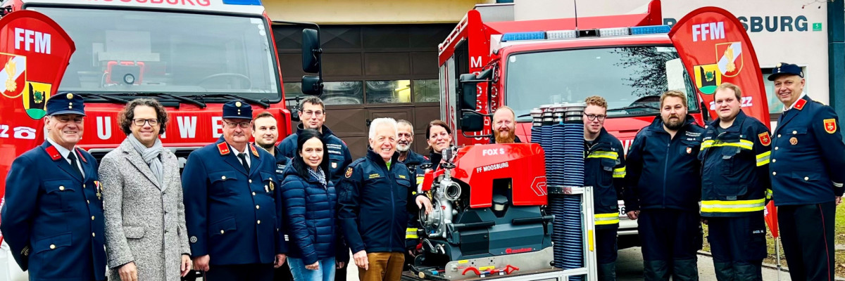 Damit das der Fall ist, gibt es in Moosburg nun eine moderne Tragkraftspritze für die Feuerwehrleute. Die feierliche Übergabe erfolgte dabei kürzlich durch LAbg Bgm Herbert Gaggl. Er nutzte die Gelegenheit, um das Ehrenamt besonders zu würdigen: „Großer Dank für die enormen Leistungen und den Einsatz für die Bevölkerung – man kann die Tätigkeiten nicht hoch genug schätzen.“