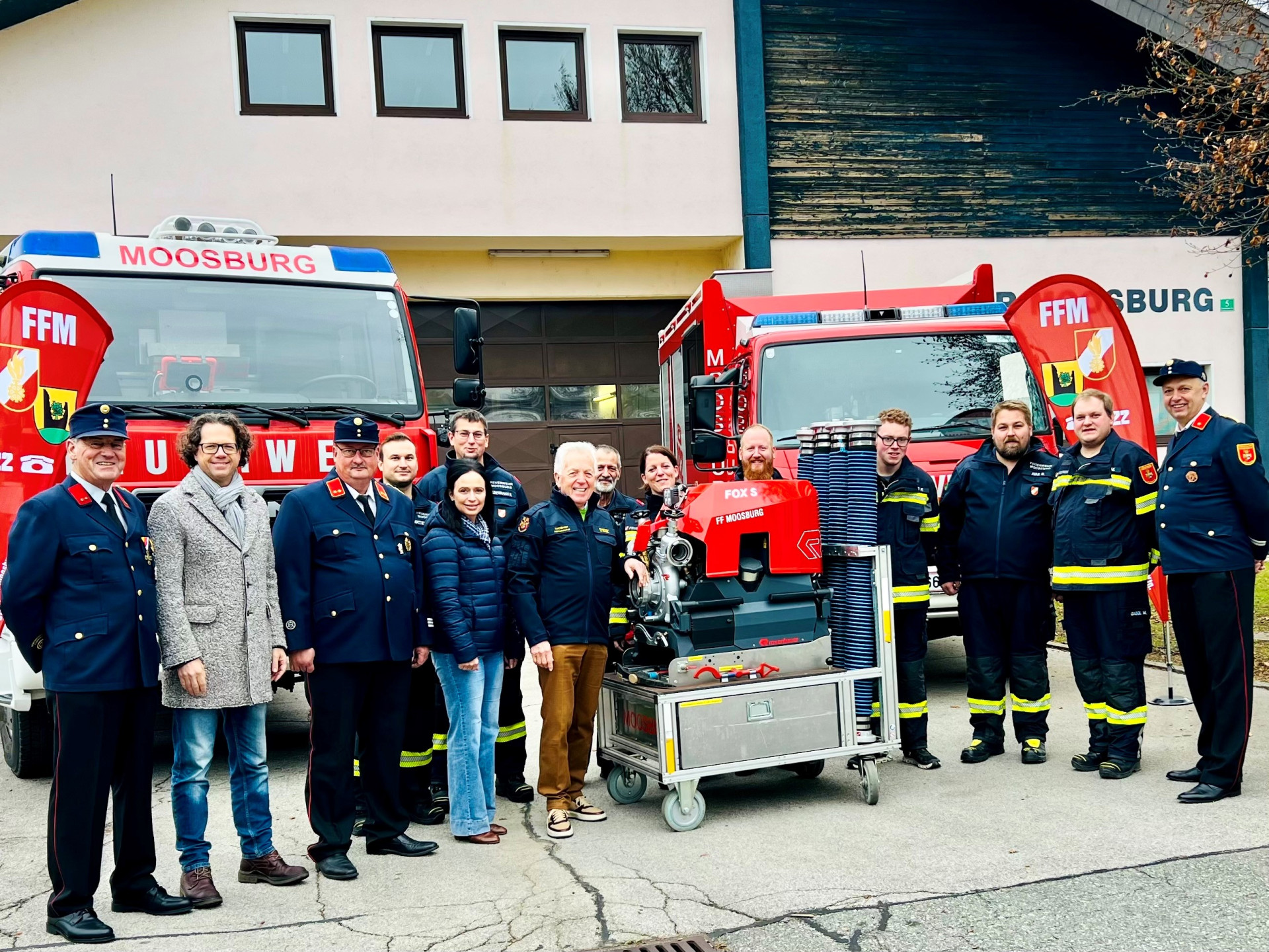 Damit das der Fall ist, gibt es in Moosburg nun eine moderne Tragkraftspritze für die Feuerwehrleute. Die feierliche Übergabe erfolgte dabei kürzlich durch LAbg Bgm Herbert Gaggl. Er nutzte die Gelegenheit, um das Ehrenamt besonders zu würdigen: „Großer Dank für die enormen Leistungen und den Einsatz für die Bevölkerung – man kann die Tätigkeiten nicht hoch genug schätzen.“