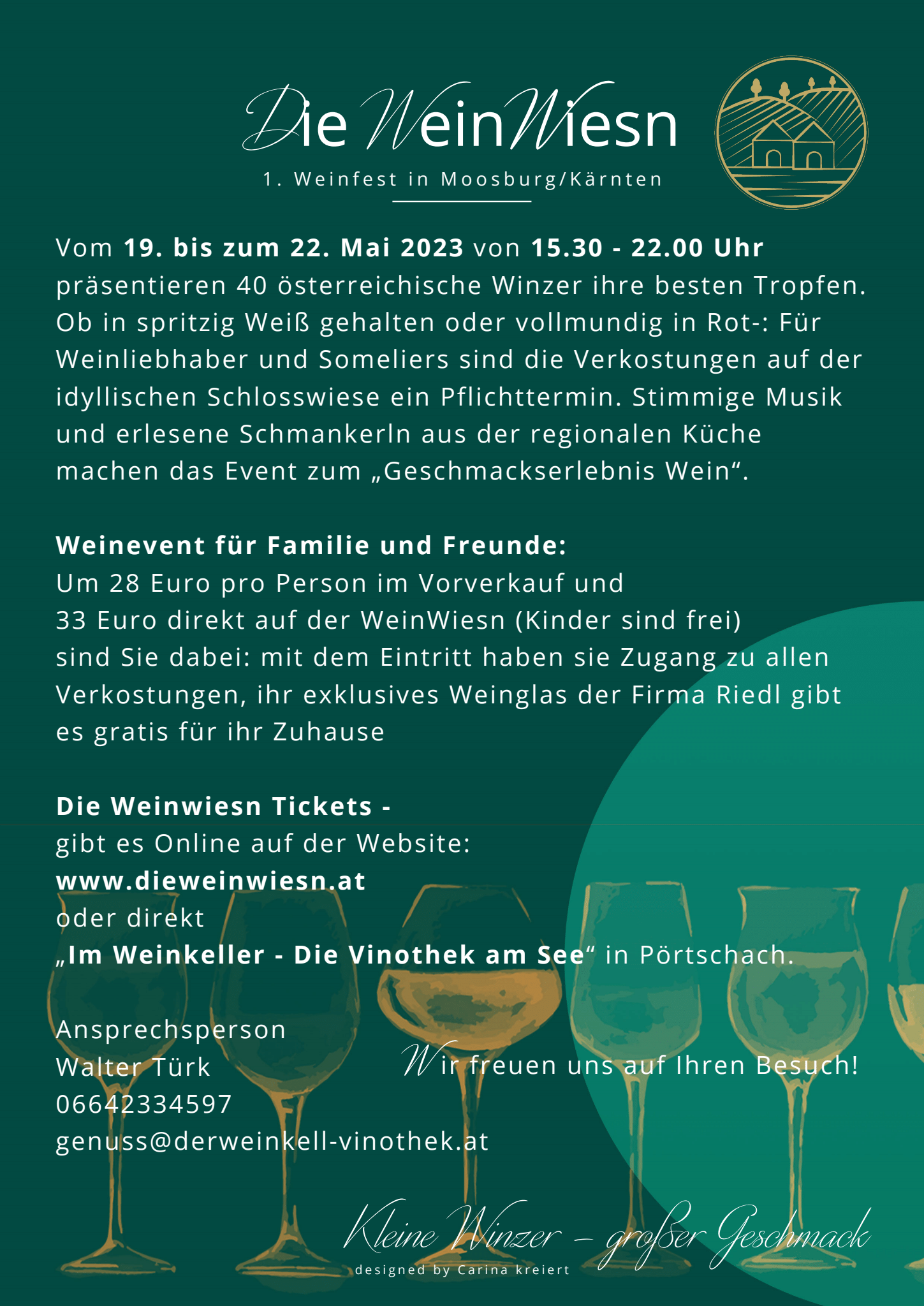 Die WeinWiesn-Tickets gibt es online auf der Website www.dieweinwiesn.at oder direkt „Im Weinkeller – Die Vinothek am See“ in Pörtschach.