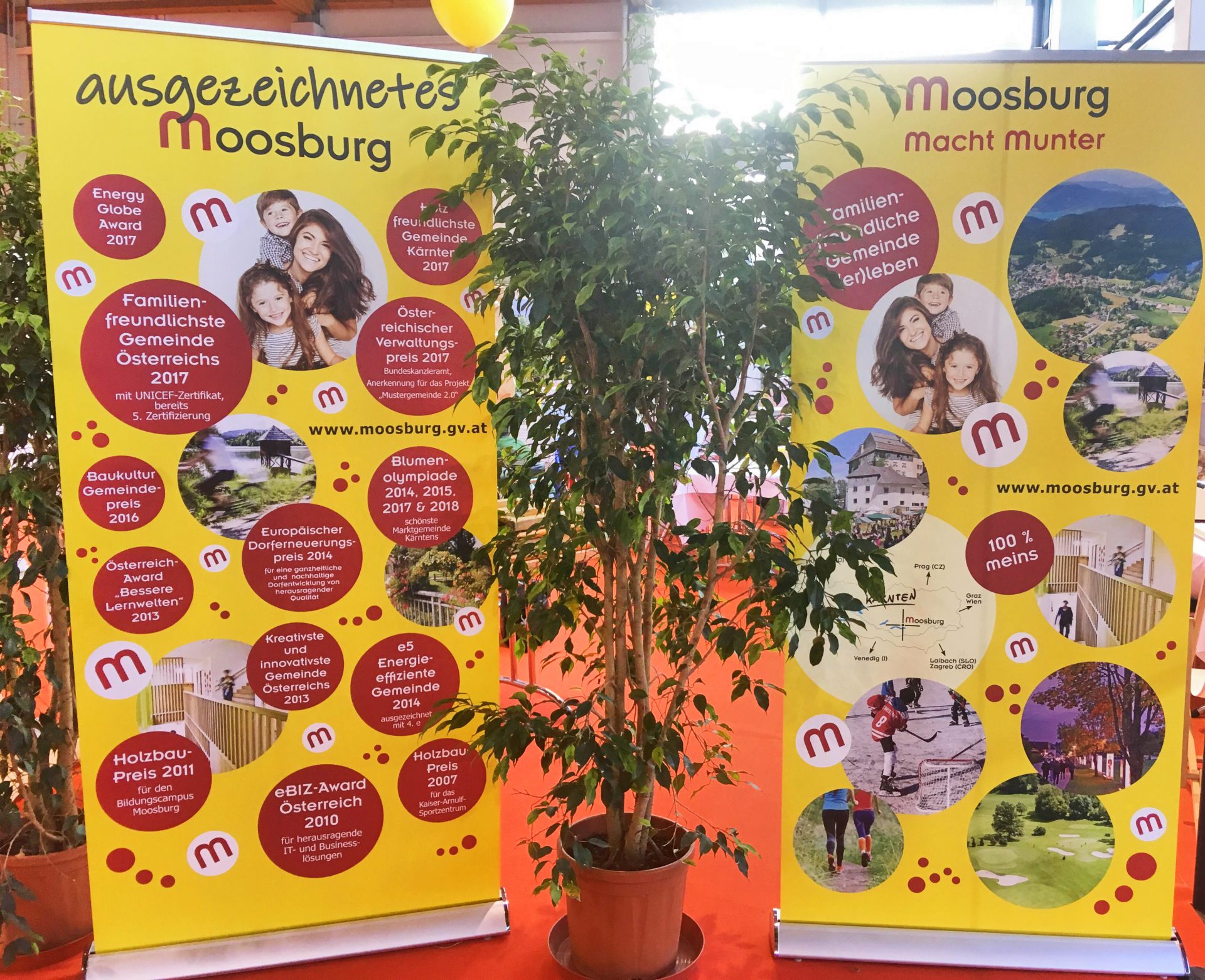 Auch die Marktgemeinde Moosburg war vertreten und präsentierte sich als „Familienfreundlichste Gemeinde Österreichs“ mit Vereinen, sozialen Institutionen und Freizeitangeboten. „Wir sind bereits fünf Mal zertifiziert und haben zusätzlich das Unicef-Zertifikat. Moosburg ist ein idealer Lebensstandort. Wir decken die Bedürfnisse unserer EinwohnerInnen perfekt ab“, informierte Bürgermeister Herbert Gaggl.