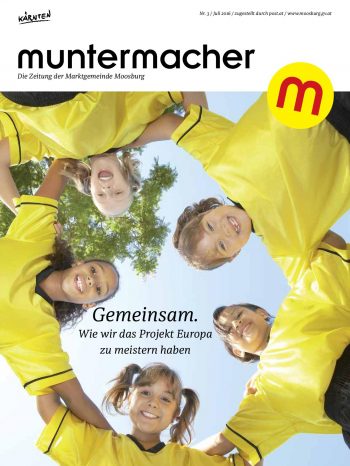 Editorial und Berichte Referenten ab Seite 3; Cover-Story: SOS Kinderdorf Moosburg ab Seite 6; Zahlen, Daten und Fakten Seite 14; Kurz fragen, Seite 15; Bildung, ab Seite 16; Senioren, Seite 20; Gesundheit, Seite 23; New Business, Seite 26; Blick hinter die Kulissen, Seite 27; Vereinsleben, Seite 29; Energie, Seite 33; Breitband, Seite 34; Chronik, Seite 36; Aus dem Gemeinderat, Seite 42; Standesamt, Seite 46; Bauen und Service, Seite 48; Moosburg anderswo, Seite 50; Lachen und Rätseln, Seite 51; Veranstaltungskalender, Seite 52.
