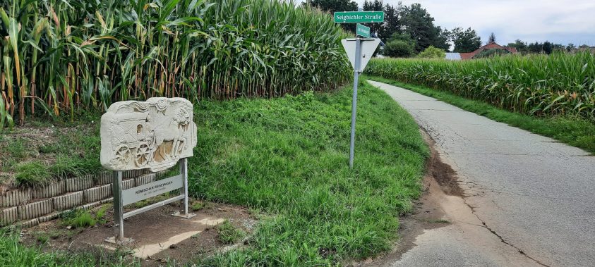 - Maria Saal, Gem. Maria Saal, BH Klagenfurt-Land; an der Südwand der Kirche eingemauert.