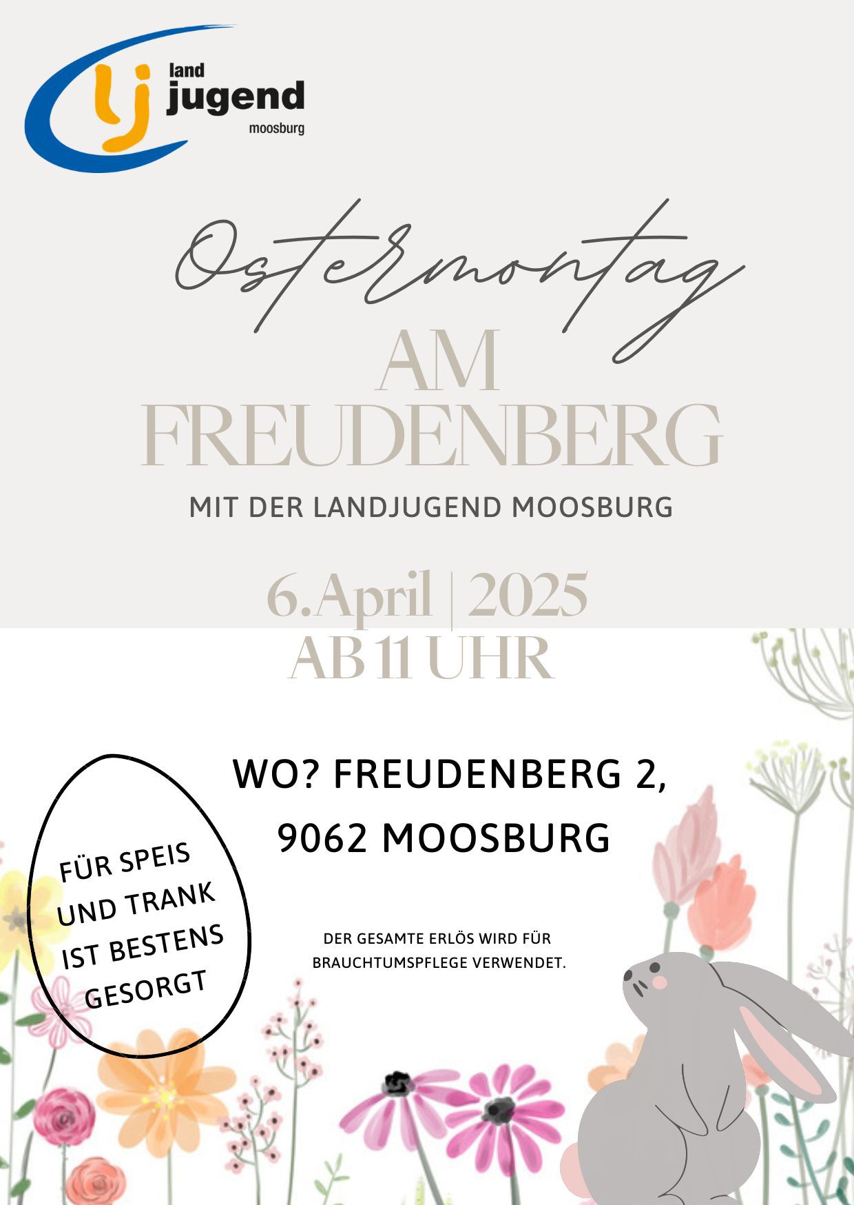 Auch 2026 ist in der Osterzeit bei der Landjugend Moosburg einiges los. Am Ostermontag, werden wir – wie in den letzten Jahren – am Freudenberg mit Essen, Getränken und Musik auf alle Wanderer, Kirchenbesucher und Gäste warten. Wir freuen uns schon darauf, den Tag mit Euch und viel guter Laune zu verbringen!